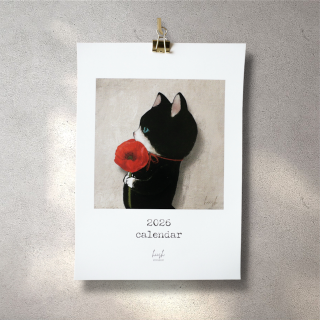 A5サイズの2026年版壁掛けカレンダーです。 hiish -イッシュ-オリジナルイラストの2026年版カレンダーは動物達とニュートラルなアースカラーが織りなす落ち着いた大人可愛い色合い仕上がりになりました。(2026年1月〜12月/日曜日始まり) クリップとカレンダーホルダー(オプション料金)からお選び頂けます。 *クリップはバラのカレンダーを綴じて吊るして飾って頂けます。 *カレンダーホルダー(オプション料金)はスライド式レールに閉じたカレンダーです。ホルダーからカレンダーを外して順番を入れ替えて再装着する事も可能です。 送料無料のお得なセットはこちら https://hiish.theshop.jp/items/114163734 艶を抑えた高級感のあるマットコート紙にアップグレードしました。 小ぶりなA5サイズで表紙と2026年1月から12月までのカレンダーで合計13枚セットです。 大人可愛いオリジナルイラストの壁掛けカレンダーはデスク前、玄関、階段やニッチなどのちょっとした空間でも飾って頂ける小ぶりなA5サイズの壁掛けカレンダーです。 落ち着いた色合いで大人な雰囲気のおしゃれ可愛いミニカレンダーです。 2026年版は動物たちのイラストを集めました。 動物たちの小さいながらも季節を楽しめるイラストです。 年末年始のご挨拶やお配り用にもオススメです。 (1冊づつ個包装でのお届けになります) 【仕様】 A5判縦サイズ 月別/2026年1~12月 日曜始まり 金属クリップ(無料) カレンダーホルダー(オプション料金) ご注文時にお選び下さい 【素材】 マットコート紙 90kg クリップ 真鍮製 ホルダー プラスチック 【サイズ】 約幅148×高さ210mm(金具、ハンガーは含まず) 【イラスト内容】 1月 ひっそりと湖面に佇む水鳥 2月 猫の応援団。2/22猫の日のニャンコ。 3月 春の陽気にネムネムなワンコ。 4月 春の窓辺から人待ち顔のウサギ。 5月 新緑の中の散歩が待ち遠しい子犬。 6月 雨が降ると歌い出すカエル。 7月 夏空を渡る青い小鳥。幸せを運んで。 8月 波止場の波と戯れる鳥たち。 9月 雨に佇む子猫。雨降りのお迎え。 10月 花を胸に佇む子猫。 11月 わんわんわん。垣根からワンコ達。 12月 子犬と彼の大好きなぬいぐるみの猫。 【購入の際の注意点】 写真と実物では多少色味が異なる場合があります。 手切りでカット、手作業でクリップ付けやホルダー付けをしているので、精密さに欠けるところがございます事をご了承ください。 ホルダーの吊り下げフックの位置は調節可能です。吊り下げたときにカレンダーが水平になるよう調整をお願いします。 ※撮影時の環境やPC、スマホのブラウザ環境により多少色の濃淡が出る事がありますのでご了承ください。 「国民の祝日」は、法改正により変更になる場合がございますので、あらかじめご了承ください。 【発送について】 クリックポストはご自宅のポストへの投函でのお届けとなります。また補償のない発送方法になります。 郵便事故の際の再発送等の補償は出来ませんのでご了承の上ご注文をお願い致します。 厳重な梱包でお送りしておりますが郵送中の破損・事故については到着(予定日)から3日以内にご連絡ください。 普通郵便での発送は到着日数は地域により異なります。 置き配指定や到着日時の指定はできませんのでご了承下さい。(日本郵便は日曜・祝日の配送を扱っていません) 到着日ご指定をご希望される場合は必ず宅急便コンパクトをお選び下さい。(有料)