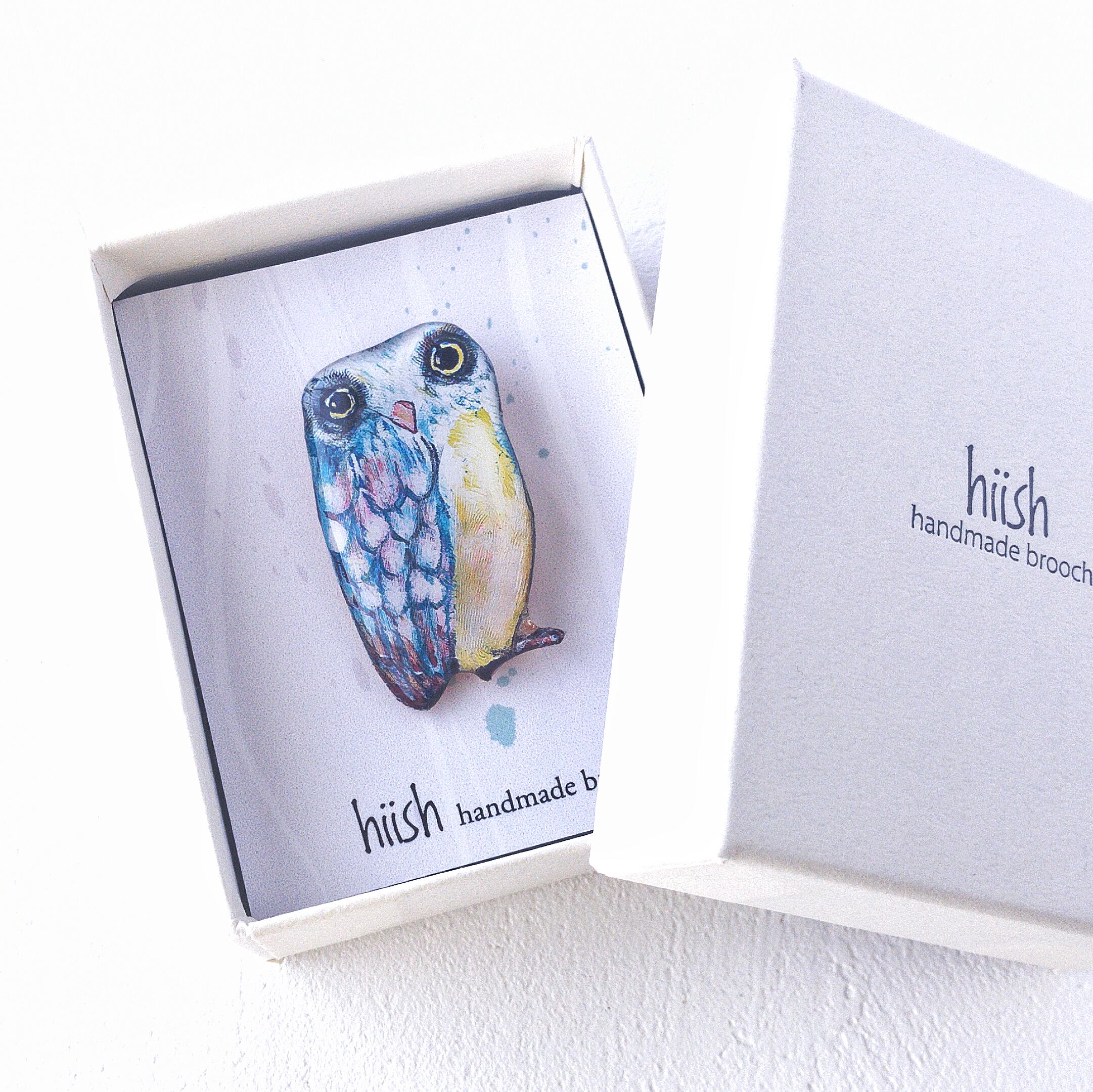 幸せを招くふくろうのブローチ、『ありがとう』の言葉を添えて贈り物にもオススメです。