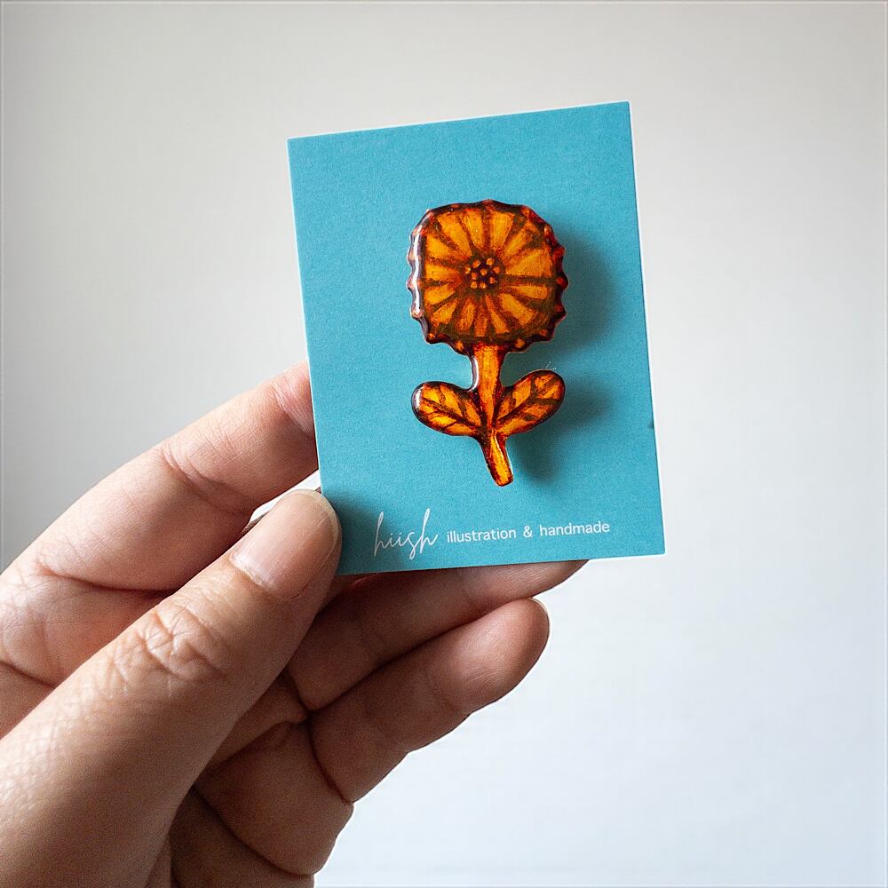 北欧風なシンプルデザインの花を深い色合いで展開し、少しアンティーク調にムラや掠れを施してブローチのデザインにしました。