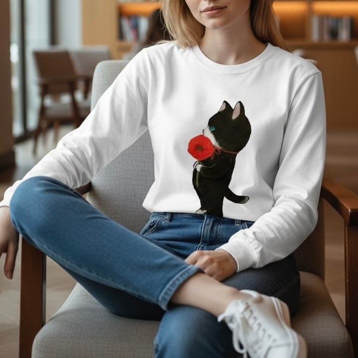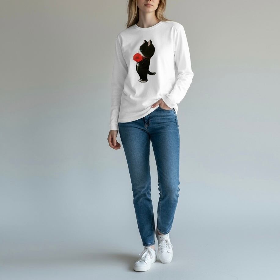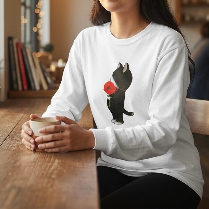オリジナルキャラクター、雛罌粟と子猫のロングスリーブTシャツです。