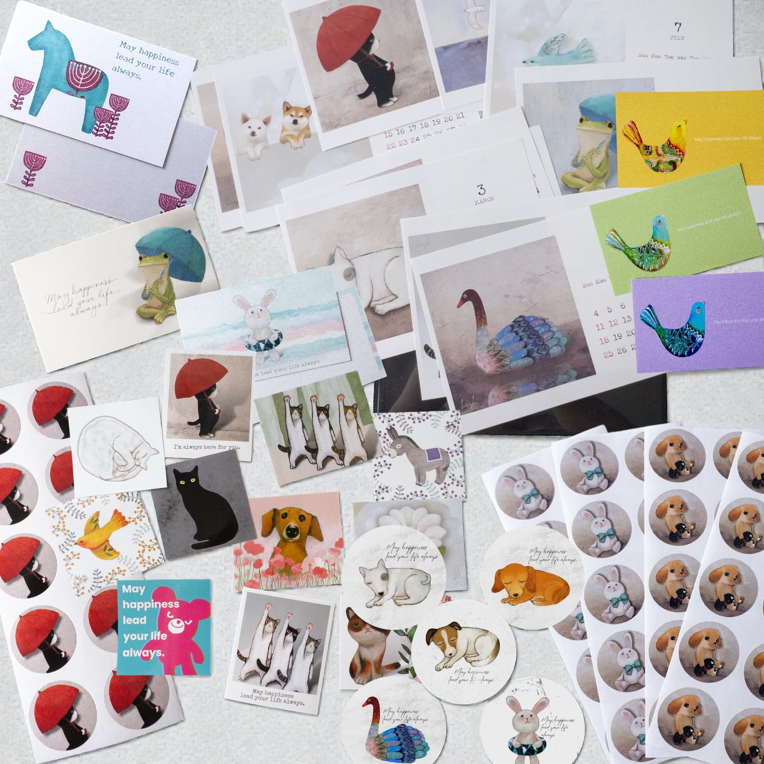カレンダー、ポストカード、メッセージカードとミニ封筒、シールなど大人可愛くて用途の多い使える紙物を集めました。