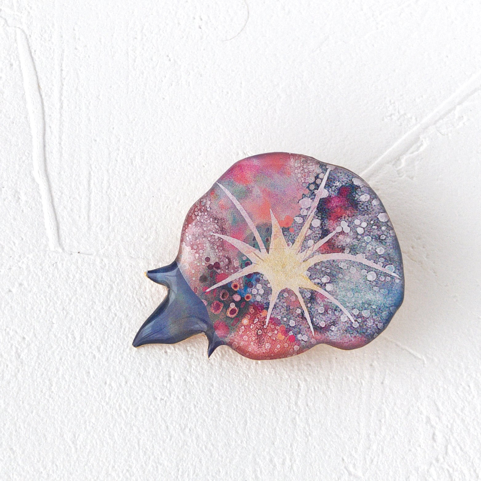 最後にUVカット効果のあるの艶仕上げを施し軽量で艶やかなブローチに仕上ました。