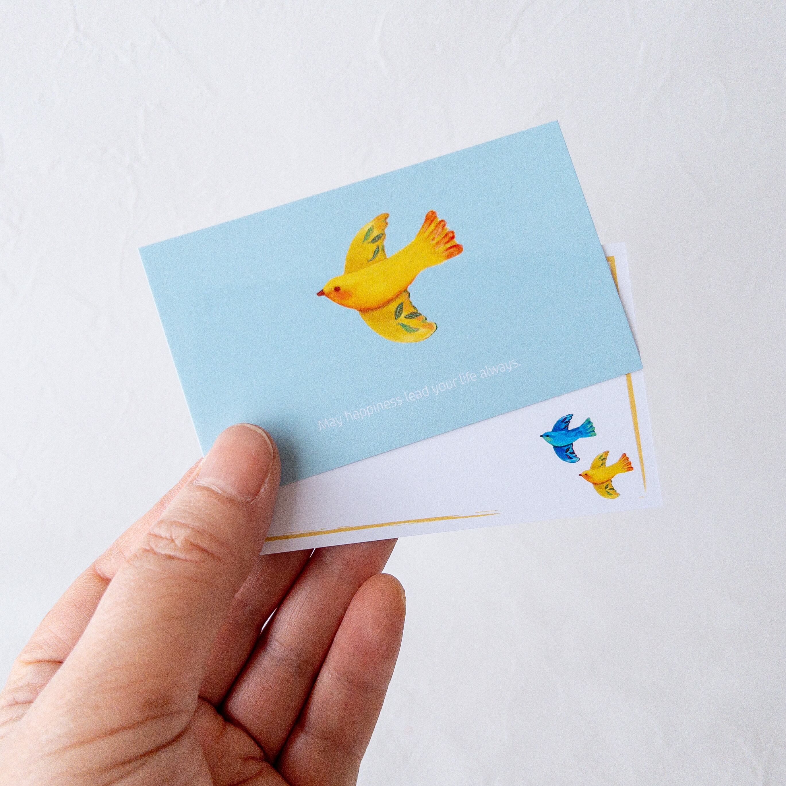 名刺サイズのツヤなし厚手の小ぶりなカードとミニ封筒の5組セットの10枚になります。