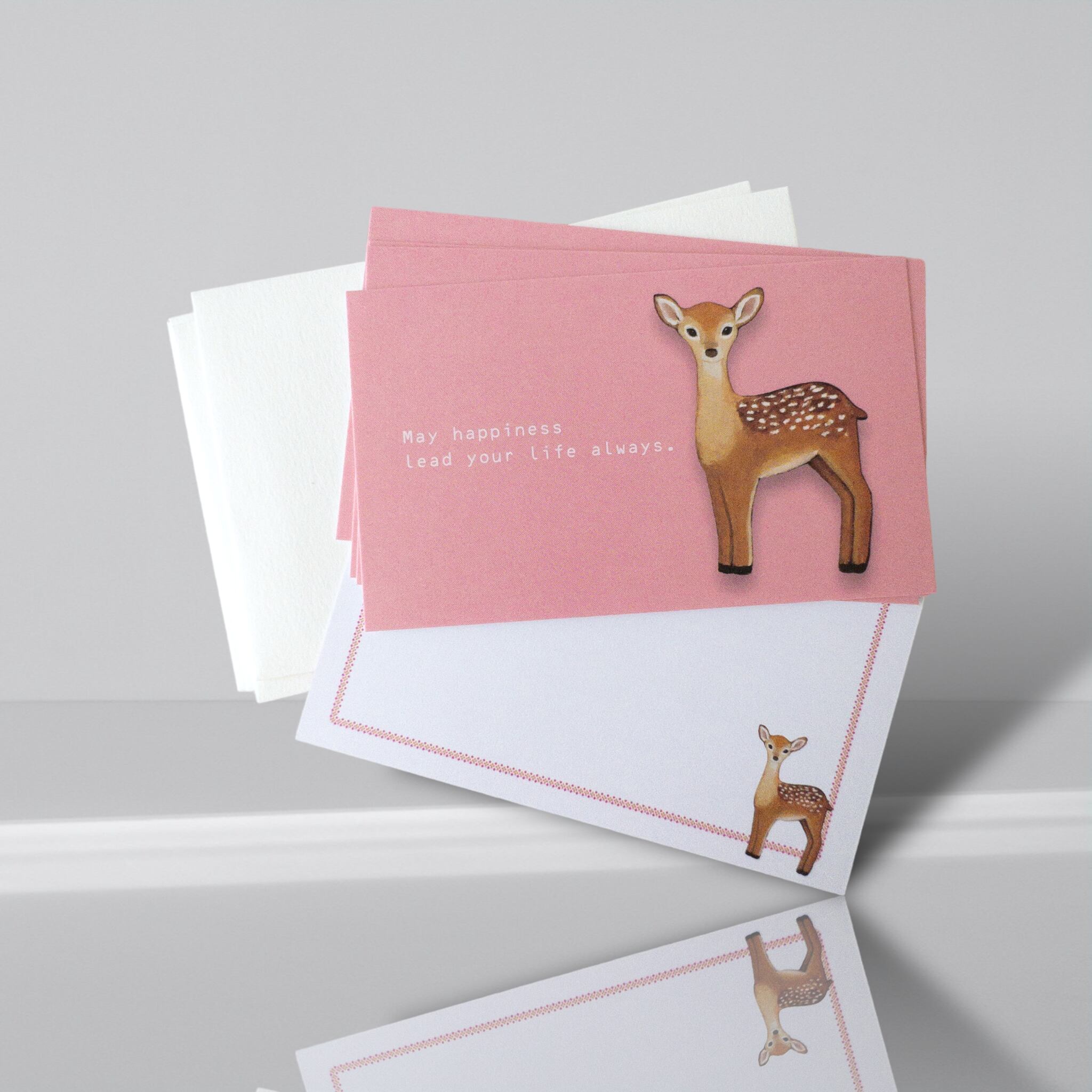 レトロチックな子鹿のイラストのメッセージカードとミニ封筒セットです。