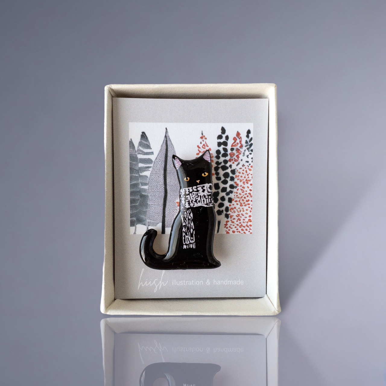 冬支度の黒猫ブローチ