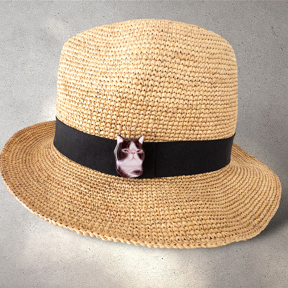 白Tシャツのシンプルな夏コーデにぶさネコちゃんブローチはいかが?